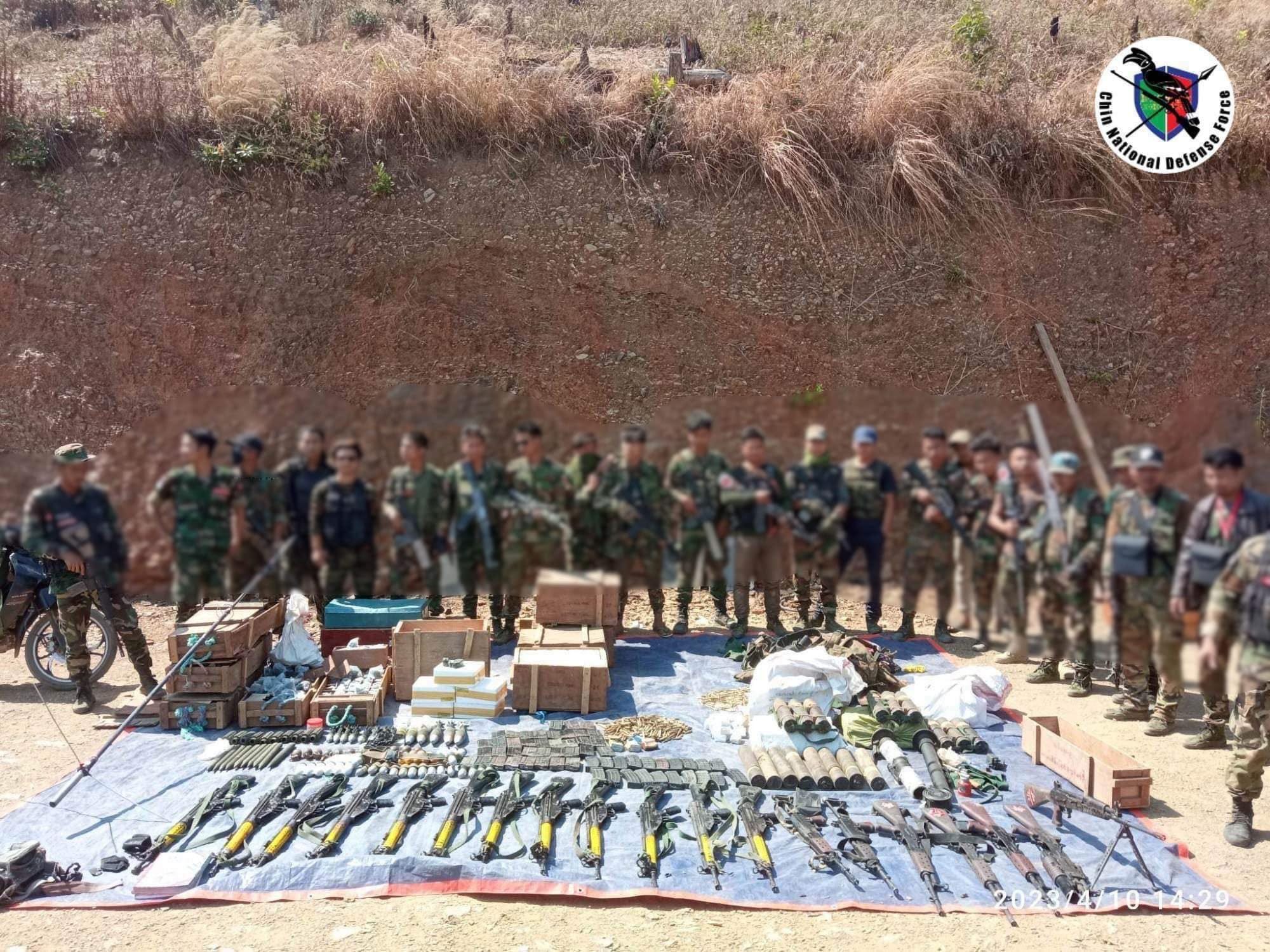 There was big news as Chin forces attacked and captured a junta camp guarding a bridge at Vaar in Hpalam township on April 10, cutting the junta’s access along that road. Fourteen junta troops were killed and a large number of weapons were captured. In response, junta jets bombed the civilian town of Webula, killing 9 citizens. (Chindwin News Agency 4/10)